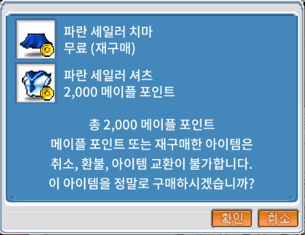 ※ 메이플포인트로 구매한 치장 아이템은 다른 플레이어와 교환이 불가합니다.