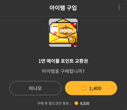 ② 구매한 메이플포인트 교환권을 사용합니다.