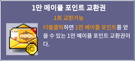 ① 캐시샵에서 메이플포인트 교환권을 구매합니다. 구매한 메이플포인트 교환권은 1회에 한해 다른 플레이어와 교환이 가능합니다.