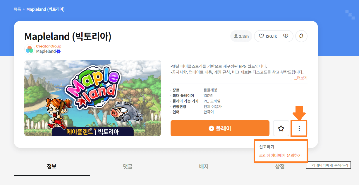 (크리에이터에게 문의하기 : https://maplestoryworlds.nexon.com/ko/play/be146ee19f5247d18c13834ec29eef09/)