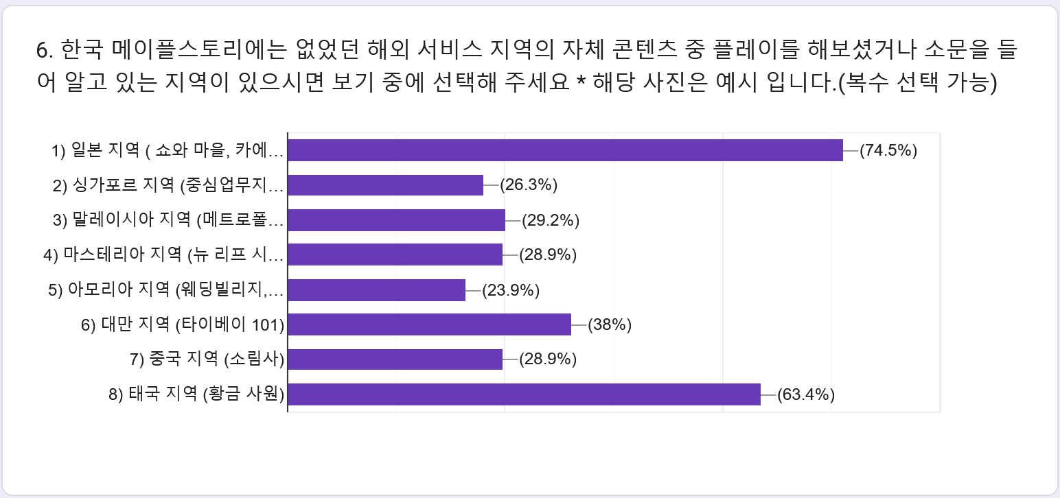 설문조사 결과에서 많은 응답을 보내주신 콘텐츠들을 비롯해, 해외 메이플스토리에서 서비스되었던 지역들의 출시를 위한 작업을 순차적으로 진행하려 합니다.