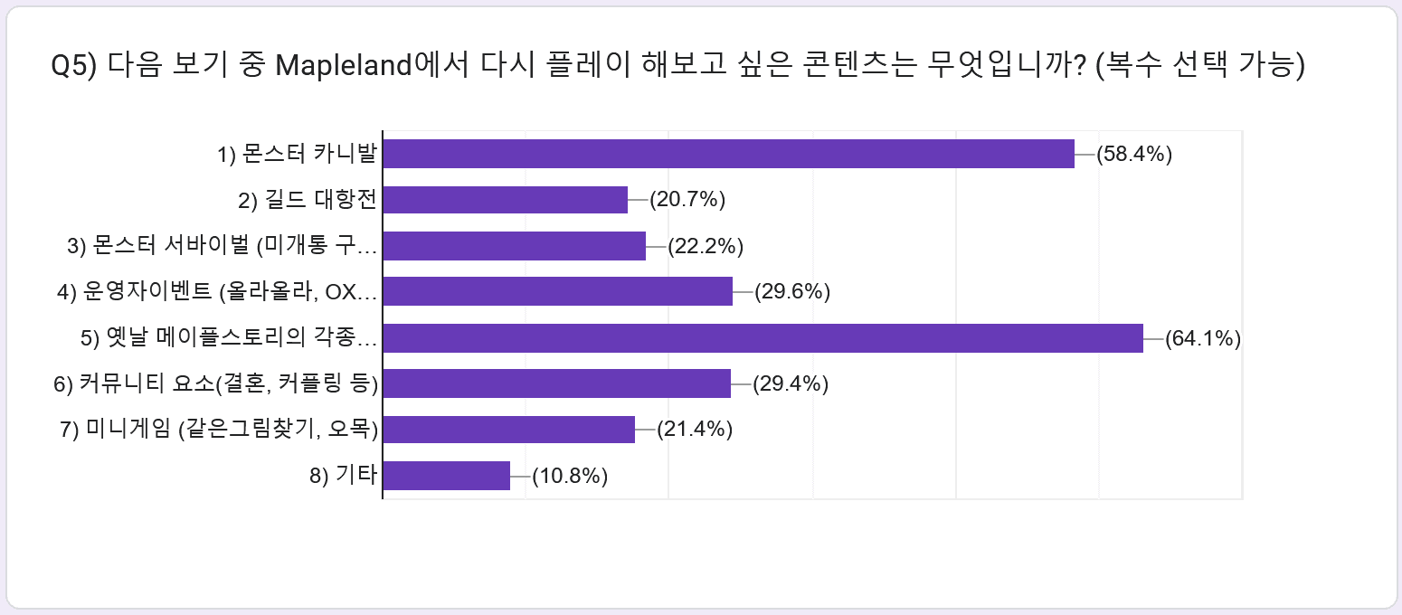 최근 Mapleland가 진행했던 설문조사에 굉장히 많은 분들이 참여해 주셨는데요, 설문조사 결과와 함께, 앞으로 예정된 업데이트 및 작업 내역을 간단히 소개 드리려 합니다.
