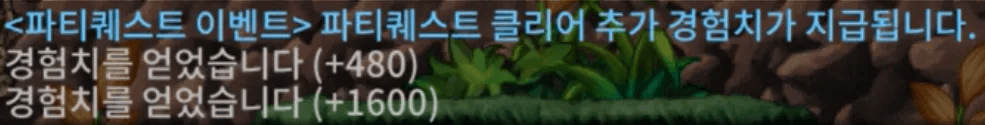 이벤트 기간 동안 각 파티퀘스트의 마지막 단계 완료 시, 아래의 예시와 같이 추가 경험치를 지급합니다.