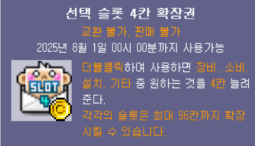 - 선택 슬롯 4칸 확장권 (1개) (8월 1일 00시까지 사용 가능)
